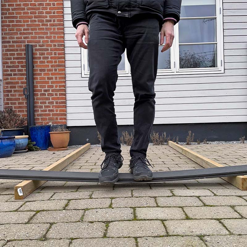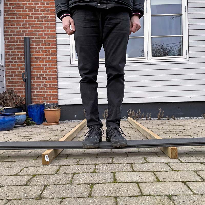 Forklaringen får du ved at tage en lineal og bøje den. På den flade led er det nemt, for her er linealen ikke ret stærk. Men vender du den en halv omgang, kan du kun vanskeligt bøje den, for på højkant er den stærk, ligesom din konstruktion under terrassen.