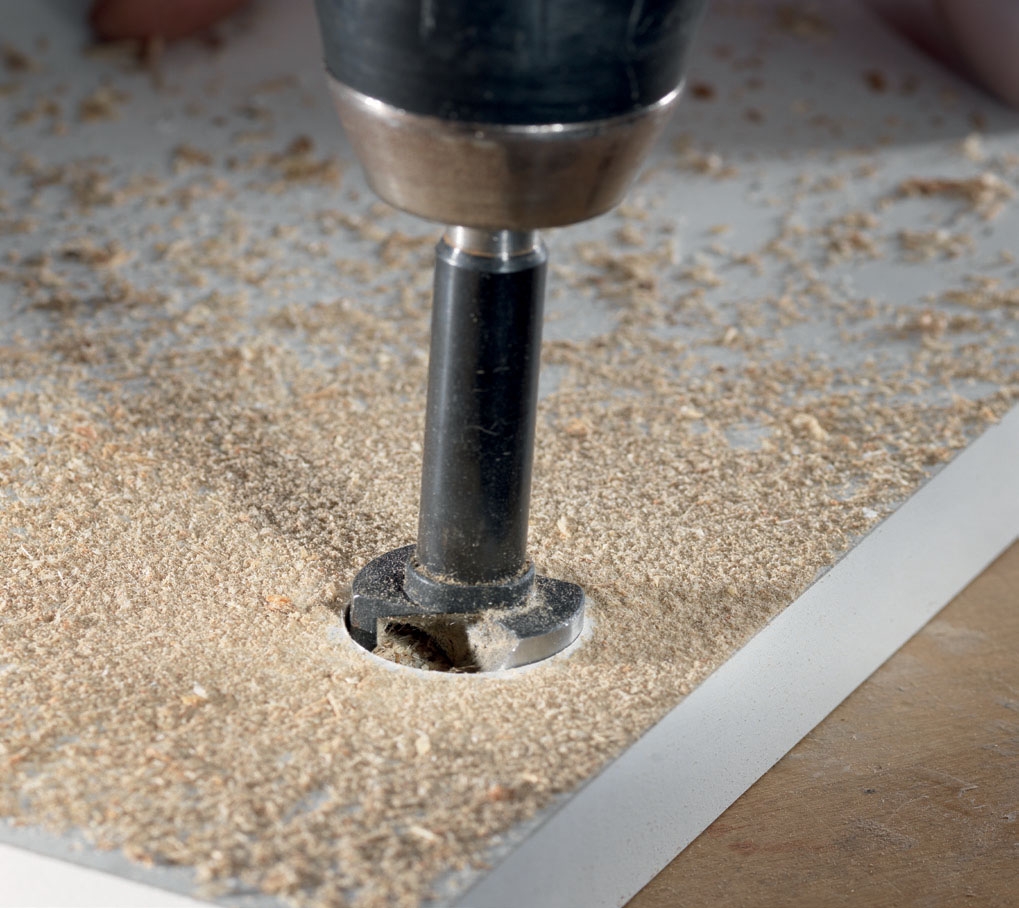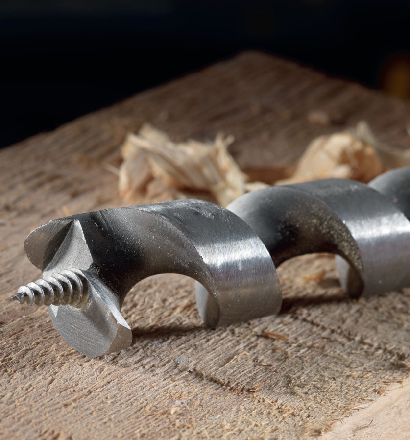 Til dyvler og propper skal hullerne være helt rene i kanten, så der kan du ikke bare tage et almindeligt HSS-bor og køre løs. Det er såmænd udmærket, hvis du bare skal bore for til en skrue, men når hullet skal være synligt og slutte tæt om fx en prop, så skal du bruge det dyre, men højef ektive, sneglebor. Sneglen skærer i siderne og transporterer samtidig træet op af hullet, mens centerstyret holder boret fast, så det drejer helt præcist om sin egen akse.