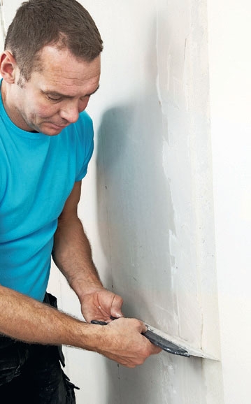 Ofte er væggen pudset, og så gør du bare som beskrevet under Muret væg. Men er væggen kun spartlet, er det ikke nok at fjerne de 2-3 mm spartelmasse.