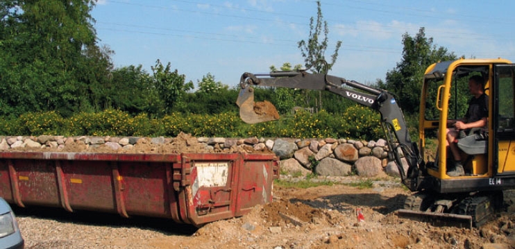 Gravearbejdet er den hårdeste del af dit arbejde med at lave nye belægninger - men lej en minigravemaskine, så har du gravet ud til terrassen på en formiddag uden at få ondt i ryggen. Når du graver ud til en indkørsel eller terrasse, bliver du nok overrasket over, hvor 2 meget jord der er tale om. En 20 m2 terrasse kræver typisk, at du graver 7 m3 jord væk. Det er meget at grave væk med håndkraft. Har du plads nok, vil det være en god idé også at leje en container, som du kan læsse jorden direkte op i.