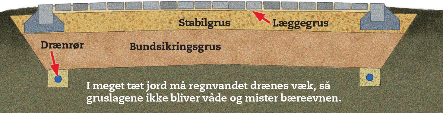 10: I tæt lerjord må vandet ofte drænes væk fra gruset