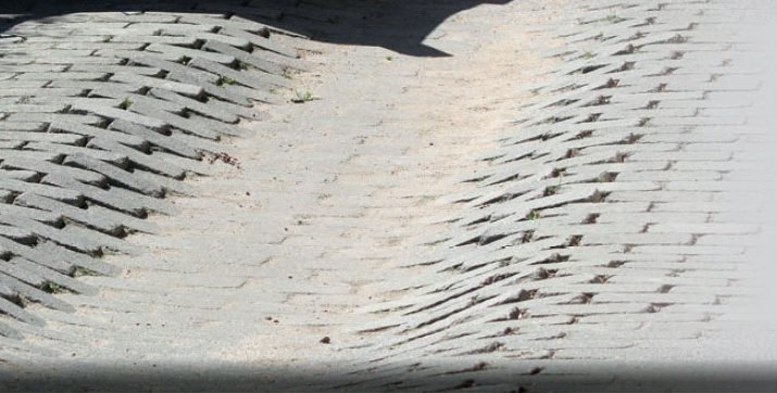 Ret fordybninger (lunker) op med det samme - ellers bliver de hurtigt større. Er der først opstået en lunke i belægningen, hvor regnen samler sig, vil vandet inden længe begynde at sive ned i fugerne og opbløde de underliggende lag, og så vokser lunken hurtigt.