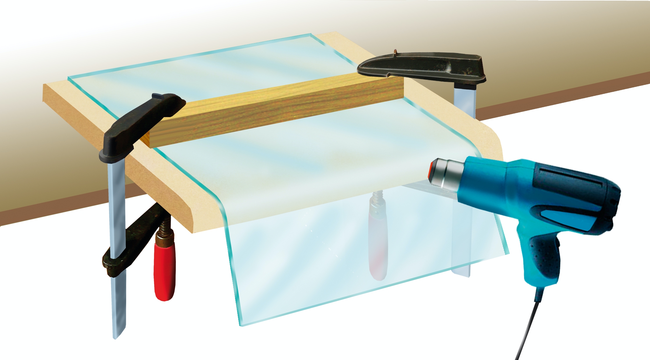Det kan godt lade sig gøre selv at bukke en akrylplastplade (plexiglas), men det er ikke helt uden vanskeligheder. Uden specialudstyr er det nemlig svært at kontrollere temperaturen, så pladen ikke bliver varmet for lidt eller for meget op. Med lidt øvelse kan du dog opnå ret pæne resultater ved at varme plasten op med en almindelig varmluftpistol.