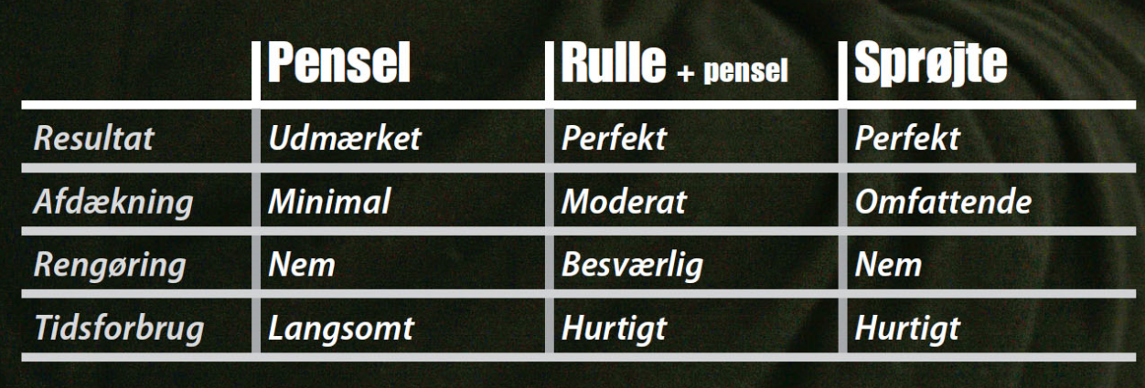 Vi rækker ofte ud efter det malergrej, der er lige ved hånden, og går i gang med en pensel eller en rulle, fordi det er sådan, vi plejer at gøre. Og malersprøjten anskaffer vi slet ikke, fordi “alle ved”, det er besværligt at fortynde malingen, så den ikke stopper sprøjten til.