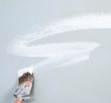 Stryg så et hvidt lag effektmaling på væggen, når det sandfarvede lag er tørt. Udjævn den hvide maling på samme måde som den sandfarvede. Den hvide farve giver væggen et lidt kalkagtigt skær.