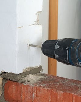 Bor et hul i en endefuge på det gamle murværk. Hullet skal være så dybt, at halvdelen af din skrue sidder i det gamle murværk.