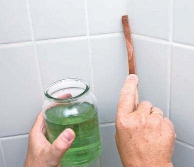Vask fliserne af første gang med meget varmt vand og en hård svamp. Hav en ekstra spand med varmt vand, som du skyller svampen i indimellem. Vask anden gang med en blød svamp og varmt vand tilsat sprit. Husk den ekstra spand til rengøring af svampen indimellem. Vaskevandet skal afleveres som kemikalieaffald.