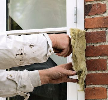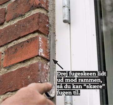 Inden du kan fuge, skal du sørge for, at der er isoleret i hulrummet mellem vinduesrammen og muren. Det kan du gøre med almindelig mineraluld, der blot skal stoppes hårdt til. Det går lidt ud over isoleringsevnen, men mørtelfugen kræver et fast underlag.