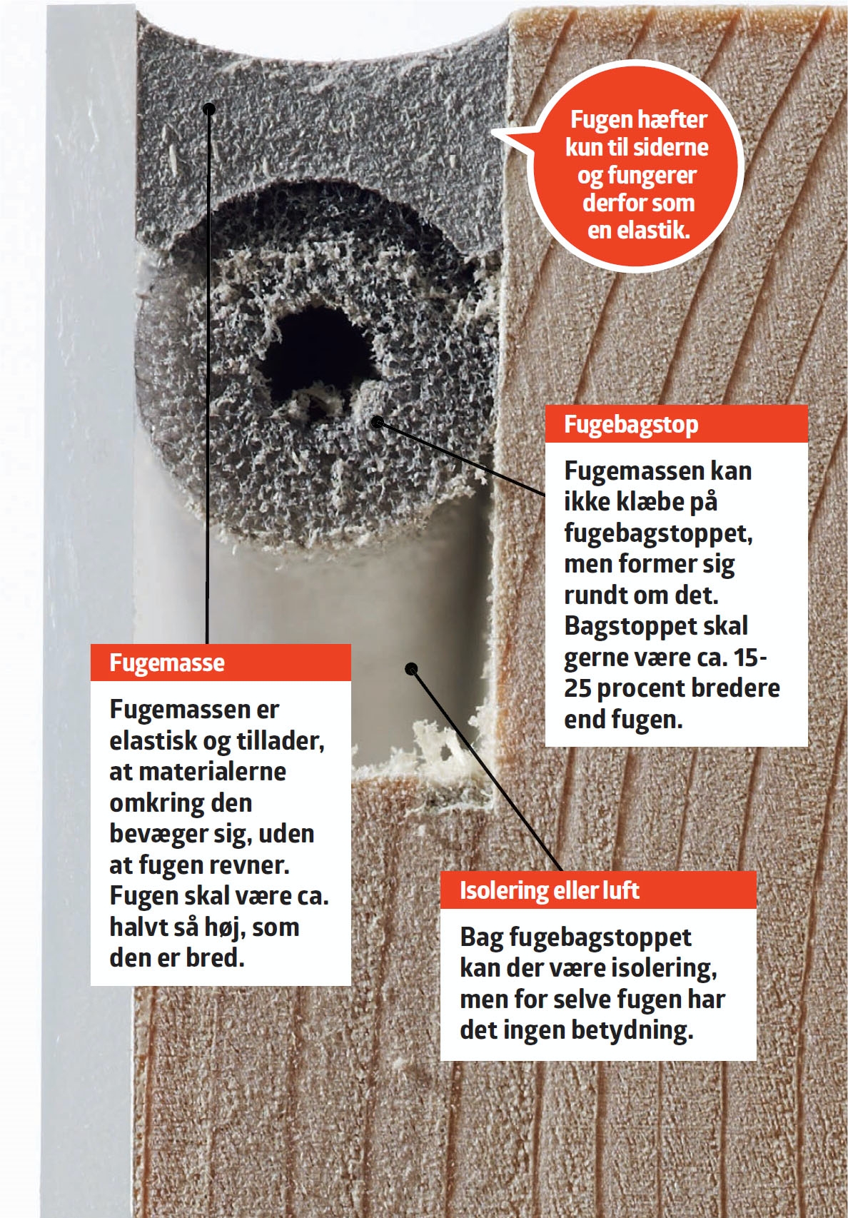 Fugen hærder med andre ord aldrig, men opfører sig lidt som et stykke frisk gennemtygget tyggegummi. Den kan klare små bevægelser, typisk på op til 10 procent af fugens bredde, men den er ikke til store bevægelser.