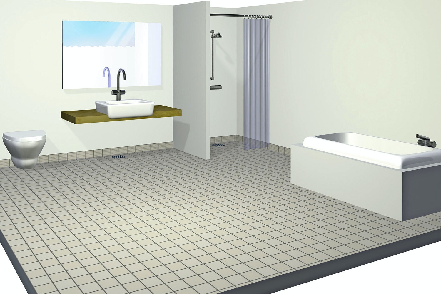 I hjørnerne anvendes særlige hjørnearmeringer, der limes fast oven på armeringsstrimlerne. Alle kanter dækkes omhyggeligt af et lag vådrumsmembran.
