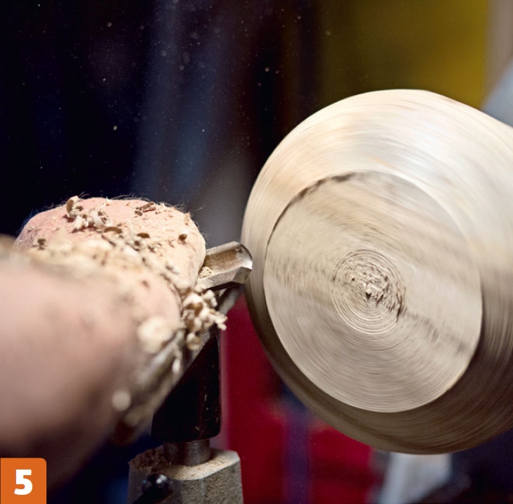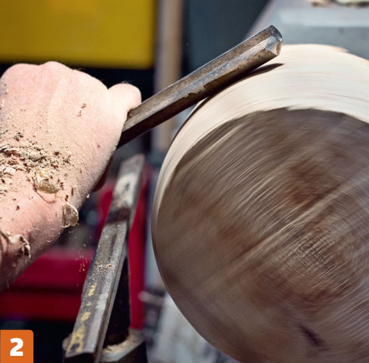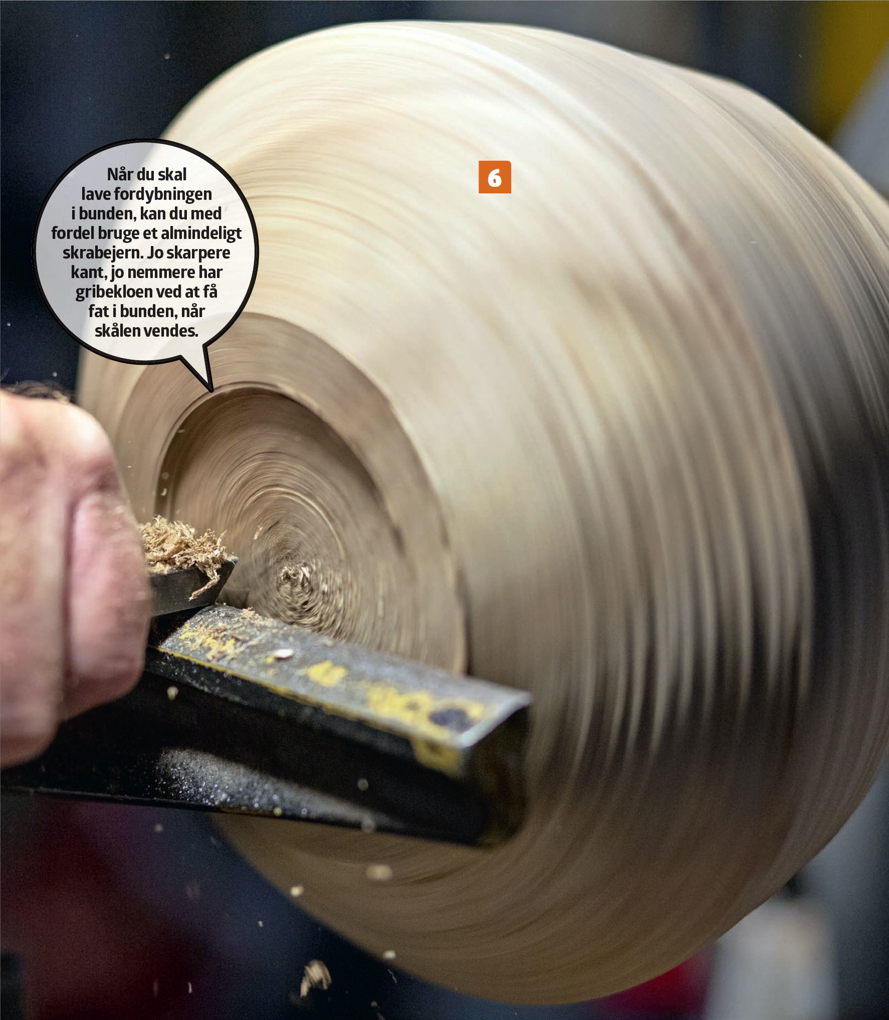 Nu handler det om at komme godt ud i skålens “hjørner”. Hvis træspånerne pakker sig inde i skålen, så du ikke kan se noget, er der ikke andet at gøre end at standse maskinen, fjerne spånerne og fortsætte.