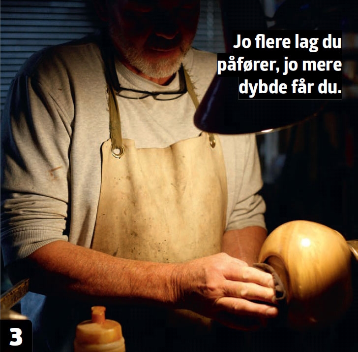 Giv overfladen lidt vand med en forstøverflaske. Vandet får træets årer til at “rejse sig”, hvorefter det slibes endnu en gang, så overfladen bliver ekstra glat.