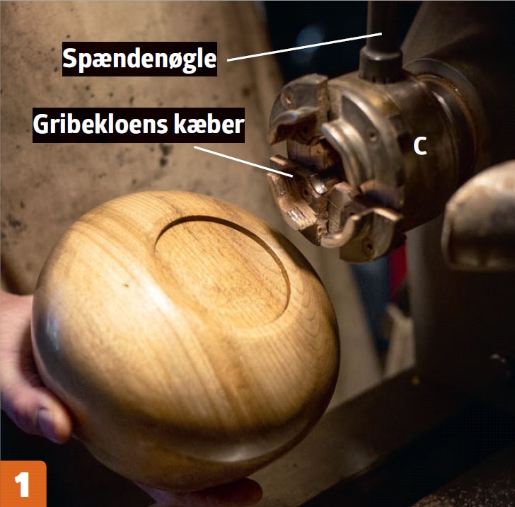 Tjek, om bunden er helt plan, ved at dreje landet. På den måde kan du se, hvor meget bunden evt. “gaber”. Eftersom vi laver en skål, skal emnets bund gerne være helt plan.