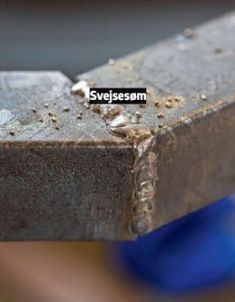 Hold tråden ned imod metallet. Hold svejsegrebet lidt på skrå. Husk at tage svejsehandsker på, og slå visiret ned, for om lidt står gnisterne om ørerne på dig!