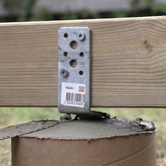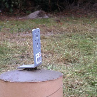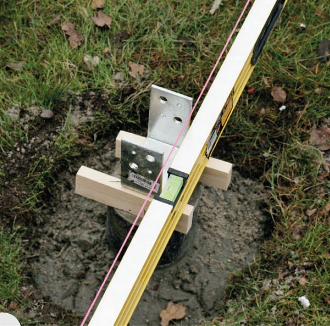 Tjek, at stolpeskoen er i vater. Listerne gør det nemt at lægge vaterpasset op, så du kan rette stolpeskoen i vater.