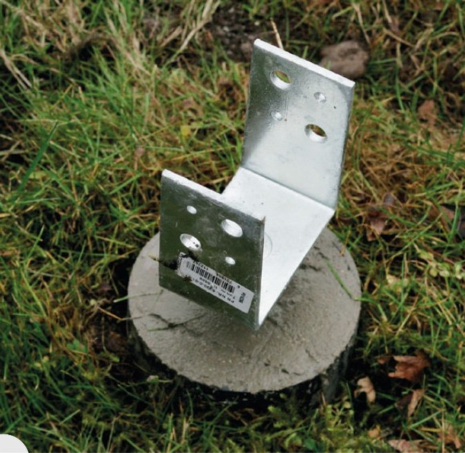 Ved at skrue begge stolpefødder fast i den samme reglar sikrer du dig nemlig, at fremtidige stolper vil komme til at stå perfekt på række.