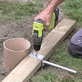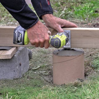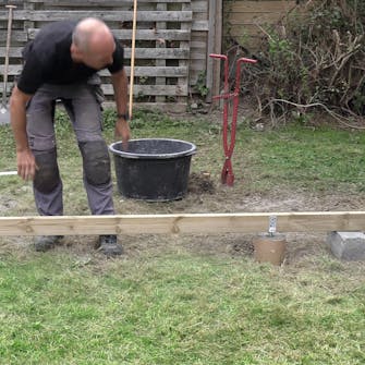 Den første dag skal du grave huller i frostfri dybde, som du derefter skal fylde med beton til at støbe stolpeskoene i. Vi viser dig her, hvordan du skal gøre, så du undgår at stolpeskoen synker eller vælter.