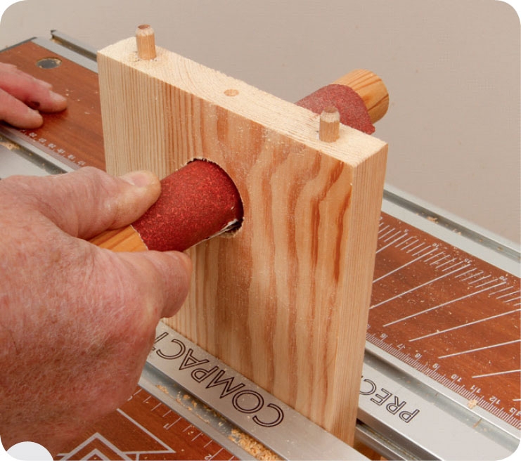 Slib hullet glat med slibepapir på et stykke rundstok, og slib selve kanten med et håndholdt stykke slibepapir.