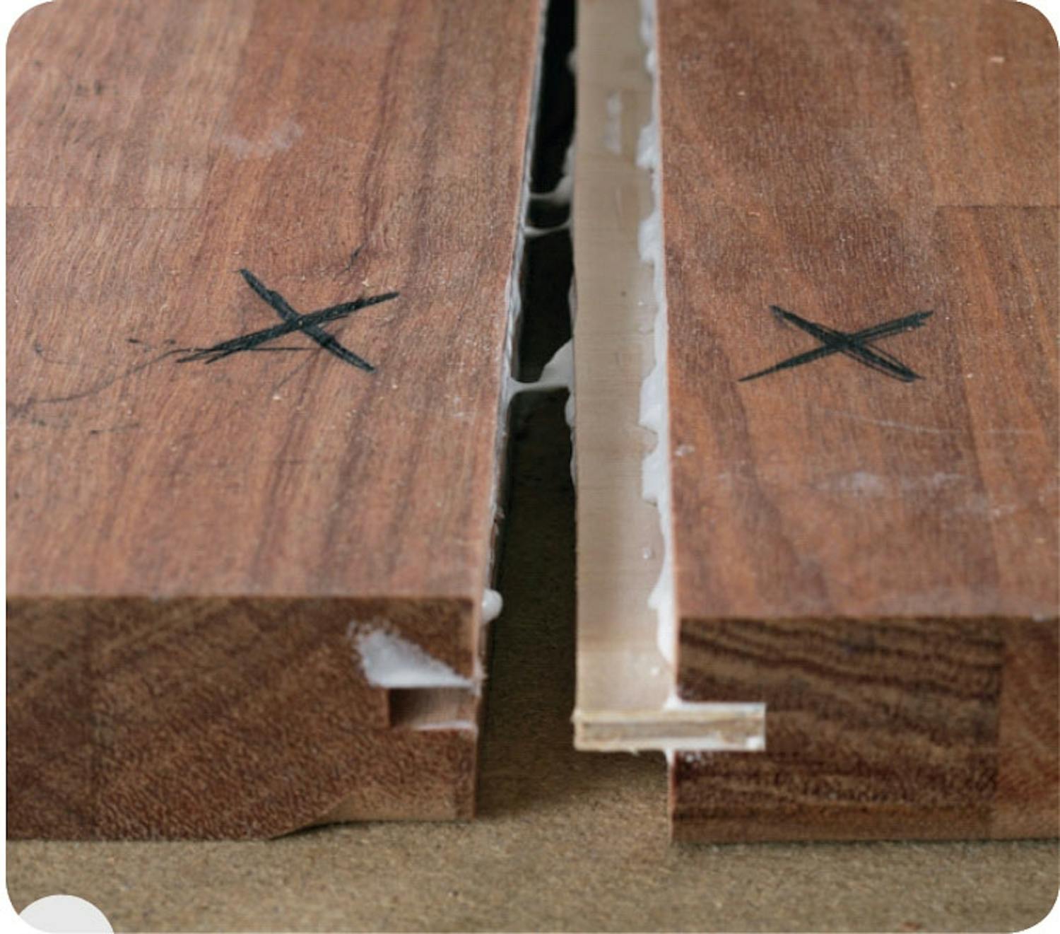 Klar til samling. De to noter ligger nøjagtig over for hinanden, og der er præcis plads til den løse fer, når pladerne bliver skubbet sammen.