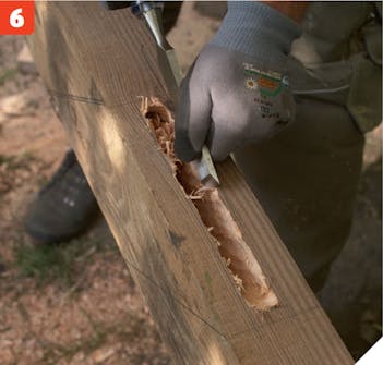 Fjern de yderste tredjedele af bjælken ved at save en masse parallelle snit og derefter fjerne dem med stemmejernet.