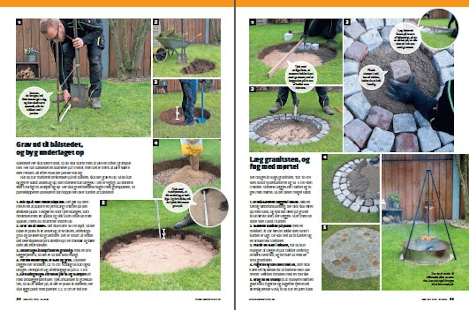 Mål op til den runde bålplads. Det gør du nemmest ved at placere en jernstang i midten på den ønskede plads. Fastgør en snor i jernstangen, som forbindes med en spade, og stik så en cirkel ud med spaden, mens du strammer snoren ud.