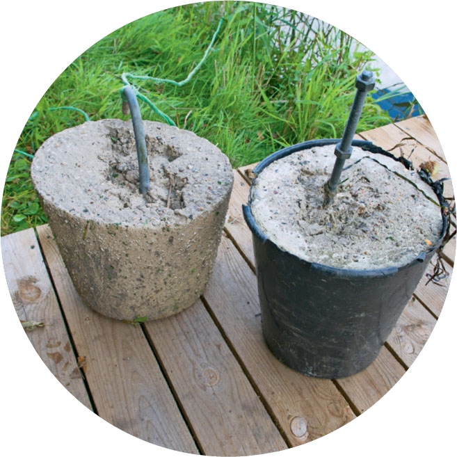 Jordankrene skrues i jorden, hvor forbindelsesbroen skal fastgøres på land. Er underlaget b l ød t, kan du evt. lægge nogle store sten under, hvor broen skal hvile. Så undgår du, at broen graver sig ned i underlaget, når den vipper op og ned takt med bølgerne.