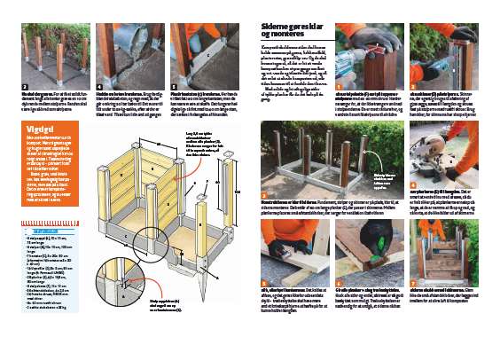 Det smarte ved denne type kompostbeholder er de løse sidestykker, der kan løftes af og på. Men for at undgå at komme til at løfte stolperne med op skal de gøres fast til stolpespyddene med franske skruer.
