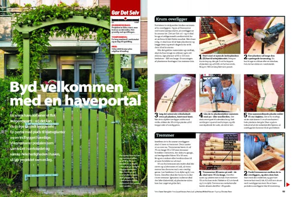 Portalens to stolpesider bindes sammen af to overliggere. Og en af finesserne ved vores haveportal er, at overliggerne krummer let. Det ser flot ud - og vi skal bruge et ældgammelt snedkertrick for at nå frem til det flotte resultat. Men bare rolig, vi skal ikke til at bøje plankerne og lægge dem i spænd i dagevis for at få dem til at krumme.