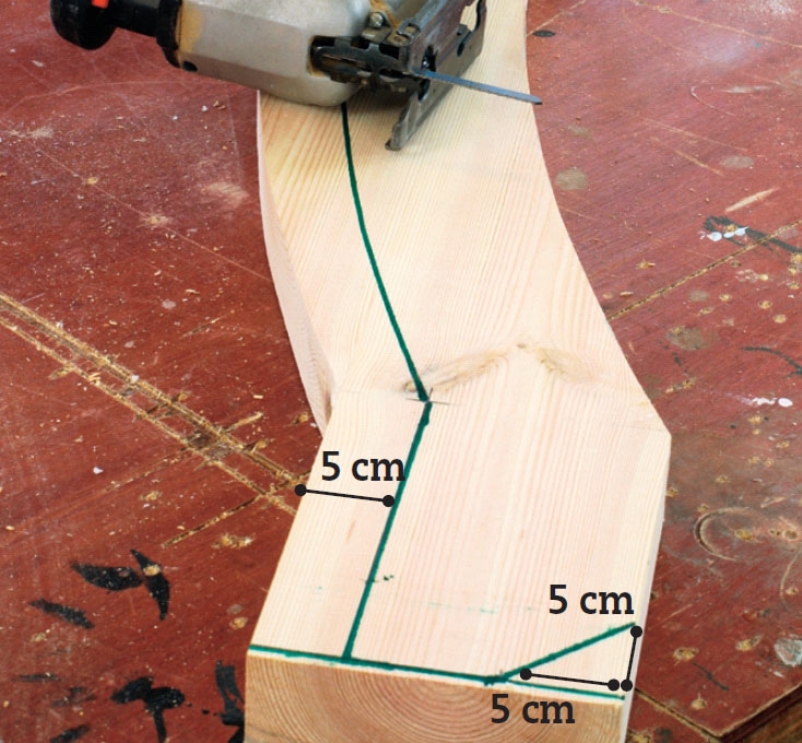 Sav planken ud langs den opstregede krumning. Du kan bruge en stiksav eller en båndsav, hvis du har sådan en i værkstedet.
