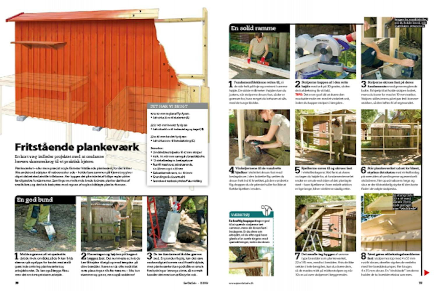 Plankeværket er nu færdigt, hvis du vil have det til at give så meget læ for vinden som muligt. Er det vigtigere at få plankeværket til at se tæt ud, og er der i forvejen læ i hjørnet af haven, så kan du som i haven her sætte lister over sprækkerne.
