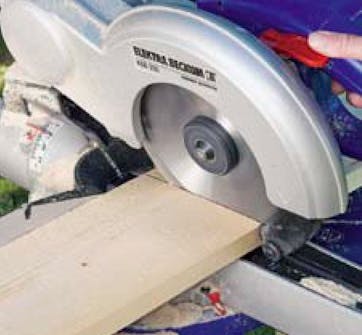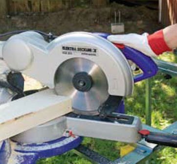 Brædder og lister skæres til med et skråt snit - listerne en lille centimeter kortere end brædderne. Det skrå snit i bunden betyder, at regnvand vil dryppe bedre af. Kap/gerings saven er ideel til arbejdet; den stilles på 15 grader.