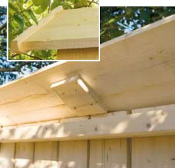 Det smalle tag bygges af samme type brædder som plankeværket, 22 x 145 mm, med to i bredden. Hvis de ikke rækker i hele længden, kan du skære dem, så de mødes midt på midter stolpen og når 10 cm ud over stolperne i begge ender.
