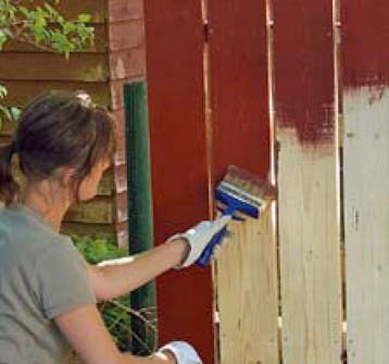 Plankeværket grundes og males nu første gang - også selv om du vil følge op med et lag tynde lister. Når træet trækker sig sammen i sommerens tørre luft, vil der ellers dukke umalede striber op bag listerne, så det er en god investering!