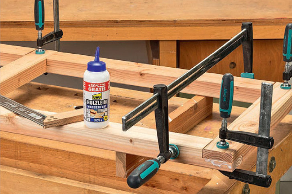 Sæt tvinger på samlingerne. Sørg for, at samlingerne er tætte, når du spænder dem sammen, og lad dem tørre under pres.