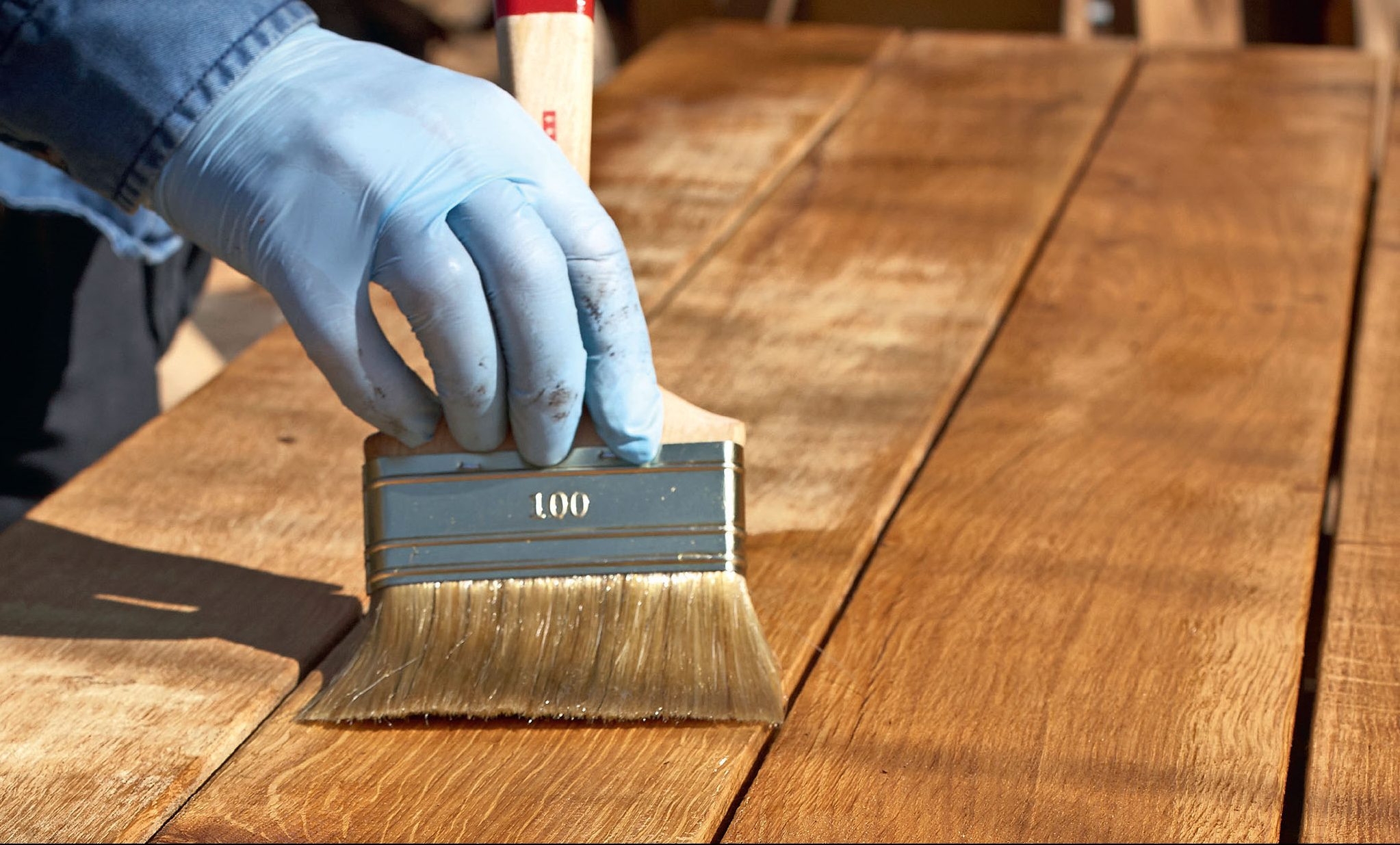 Bordpladen lægges op helt tæt med den tilskårne ende mod et fast anlæg og spændes sammen. Nummerér brædderne med en blyant. Det er vigtigt, at brædderne efterfølgende placeres i samme rækkefølge.
