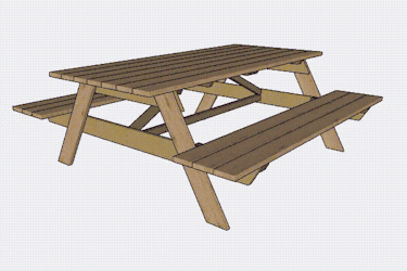 Bordpladen og bænkene bæres af stellet, der består af en A-formet konstruktion i hver ende. De holdes på plads af en sarg og to diagonalstivere.
