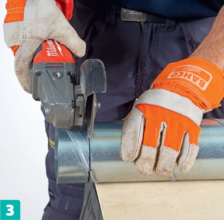 Skær røret i ønsket længde. Mange vælger en højde på 70 cm, men det er smag og behag. Husk, at den ende af røret, som skal vende op mod bordpladen, skal skæres med et helt lige snit.
