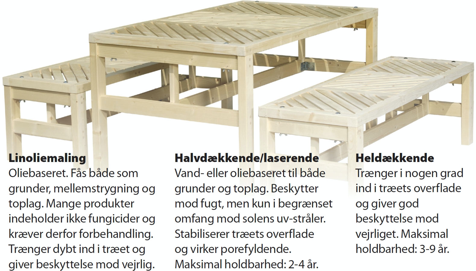 • Heldækkende træbeskyttelse, grundingsolie og trælim