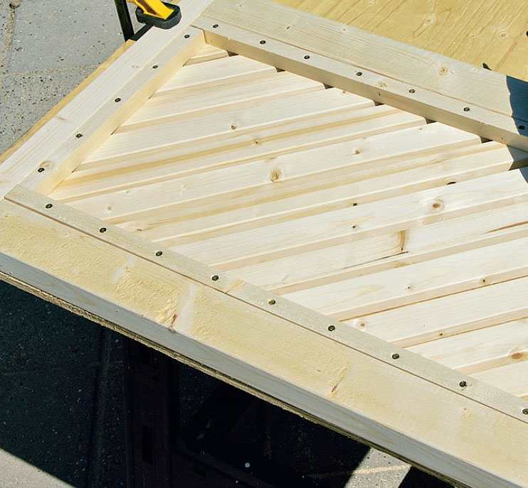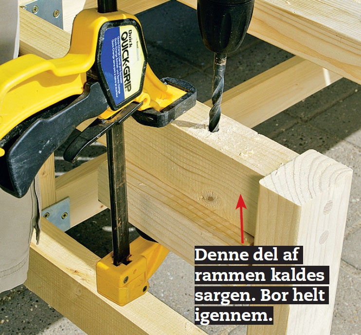 Saml rammerne oven på en plade med vinkelrette hjørner. Spænd delene sammen med en tvinge over samlingerne, og saml rammerne med 6,0 x 100 mm skruer.