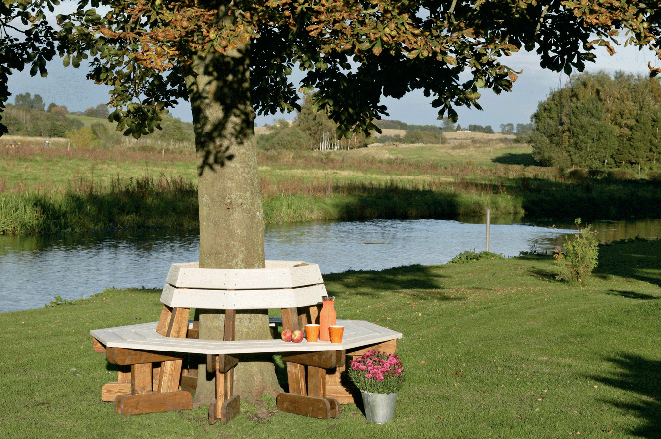 Da træ er nemt at tilpasse, kan du også sagtens bygge en havebænk fx rundt om et træ, så du har en hyggelig plads i skyggen og skaber et ekstra rum i din have.
