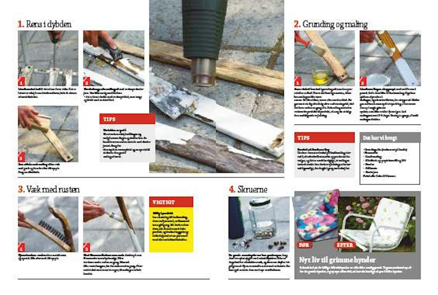 Skrab den gamle maling af med et skarpt skrabejern. Vær ikke nærig med bladene – det er let at skrabe med et skarpt blad, men trægt og hårdt med et sløvt blad.