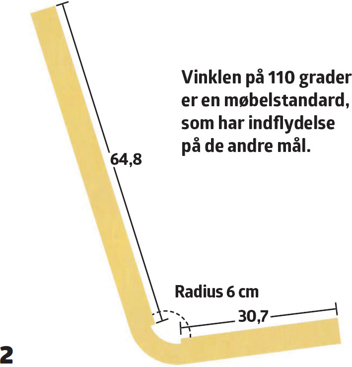 Lav formen til ryglæn og sæde, som ligner et L. Den skal være 110 cm lang på ydersiden. Vinklen er 110 grader. Indersiden er skåret, så det bliver nemmere at sætte tvinger på. Brug forskallingsbrædder til formen.