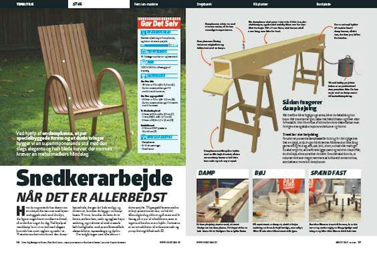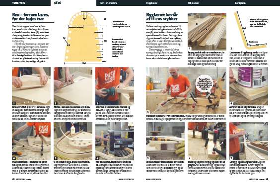 Damp og bøj derefter ryg og sæde tre ad gangen. Når du spænder ryg- og sædestykkerne (B) fast i formen, skal du starte i den korte ende. De tre lister skal hærde natten over og så limes sammen.