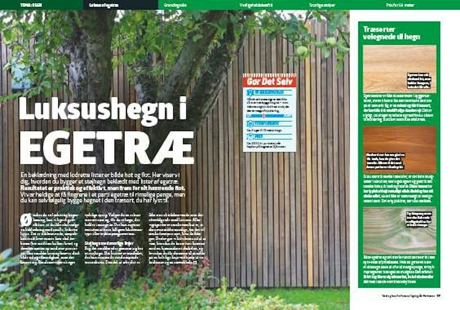 Egetræslister er ikke standardvare i byggemarkedet, men vil kunne fås eller eventuelt bestilles på et savværk. Eg er en robust og hård træsort, der kan tåle det omskiftelige danske vejr. Det er vigtigt, du bruger syrefaste og rustfrie A4-skruer til montering, da træet ellers kan misfarves.