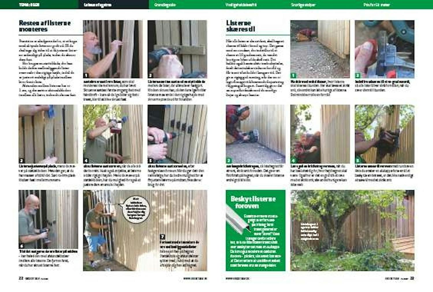 Præcision er altafgørende for, at et hegn med så tynde lister ser godt ud. Så du skal tage dig tiden til at få justeret listerne ordentligt på plads, inden du skruer dem fast.