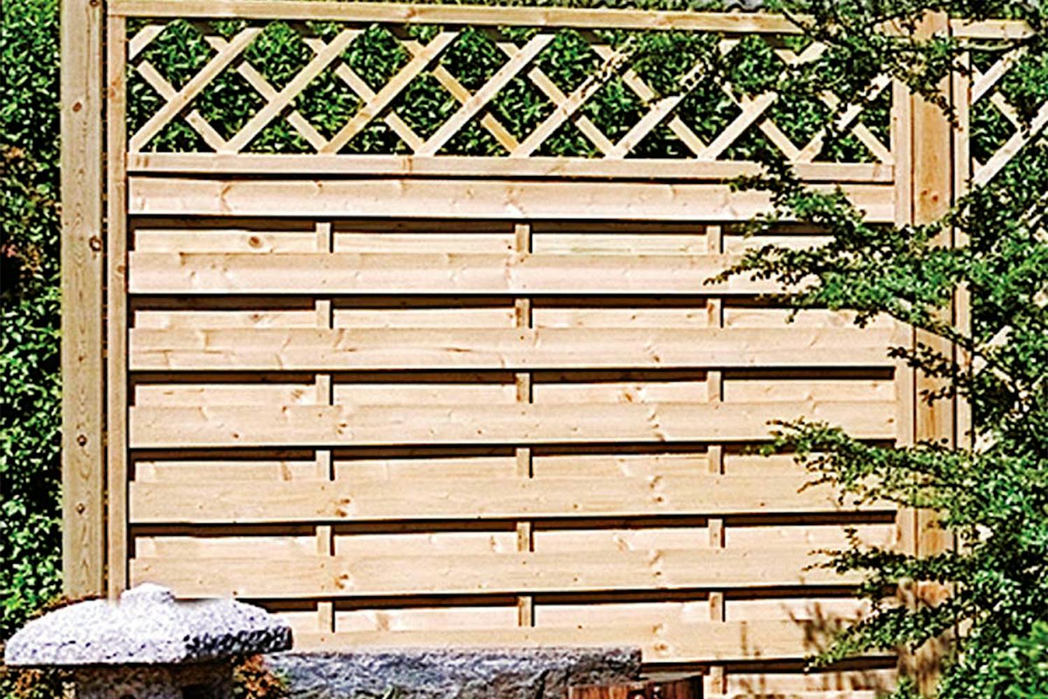 Et hegn af færdige moduler, hvor der er brugt træ af bedre/ kraftigere kvalitet. Det findes i flere varianter - fra helt enkle til nogle med mere udsmykning.