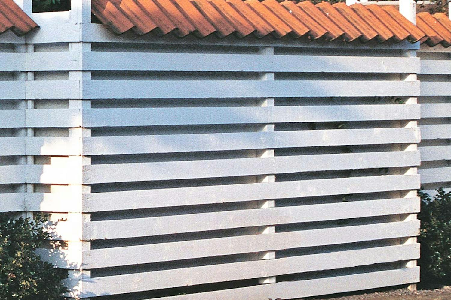 Hegnet er enkelt og består typisk af lodrette H-stolper, hvor brædderne køres ned i stolpernes riller. Hvis du vælger stolper af beton, der er støbt ned i jorden, får du en meget solid konstruktion. Brædderne samles med små samlestykker, det gør det anderledes at arbejde med end brædder af træ. Kan både være lavt og højt.