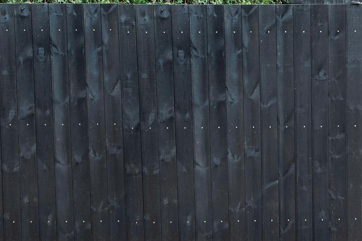 Hegnet består af vandrette brædder, der er placeret forskudt på stolperne med lidt afstand imellem.