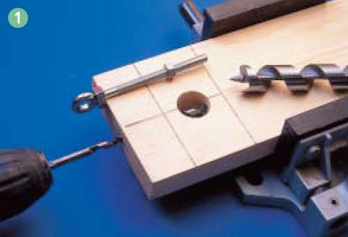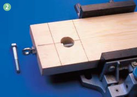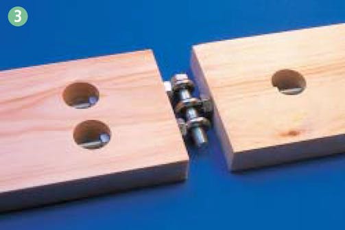 Til de to sideskærme med en øsken foroven og forneden i den ene side: Streg stolpens og øskenens placering op på lamellen. Lamellen skal rage tre cm ud fra stolpen. Bor et 18 mm hul gennem lamellen samt et 6 mm hul ind i enden og tværs gennem det store hul.