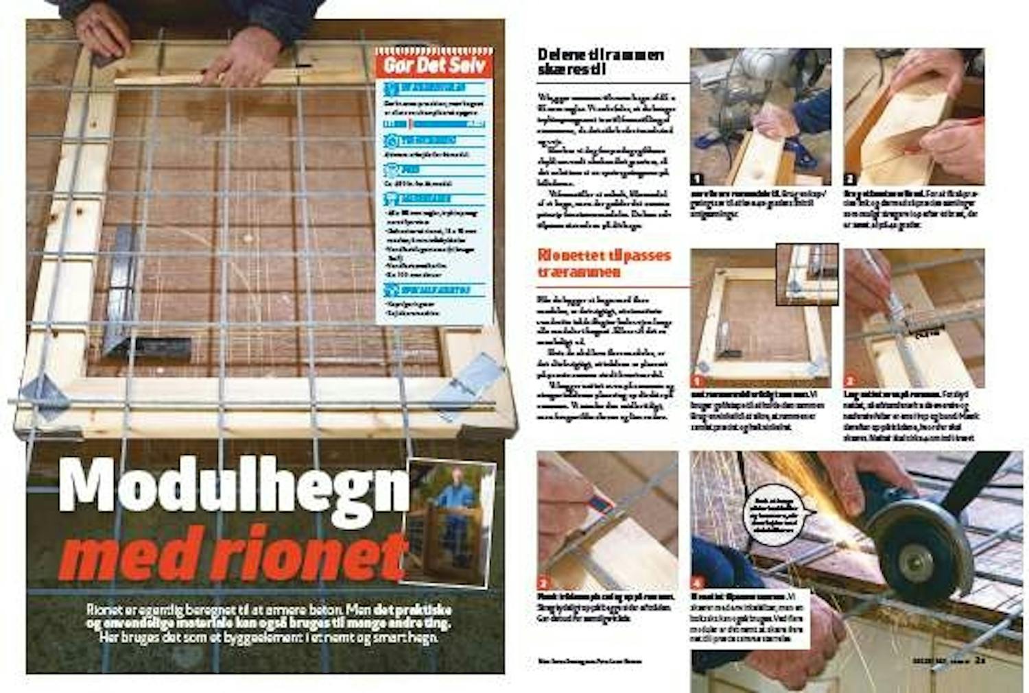 Rionet er egentlig beregnet til at armere beton. Men det praktiske og anvendelige materiale kan også bruges til mange andre ting. Her bruges det som et byggeelement i et nemt og smart hegn.